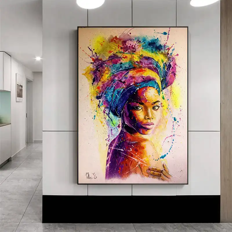 Afrique femmes imprimé affiches abstraite fille Portrait toile peinture colorée huile mur Art peinture pour salon | AliExpress